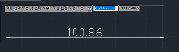 DIM 입력 -> 치수를 잴 부분 끝과 끝 클릭 -> 늘리기